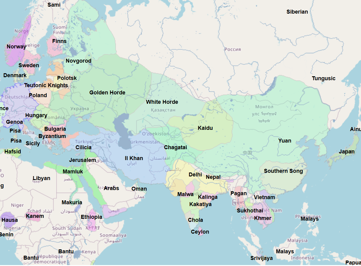 | Монголска империя | 1206 | 1368 | ~162 | 1279 | ~24.0 |