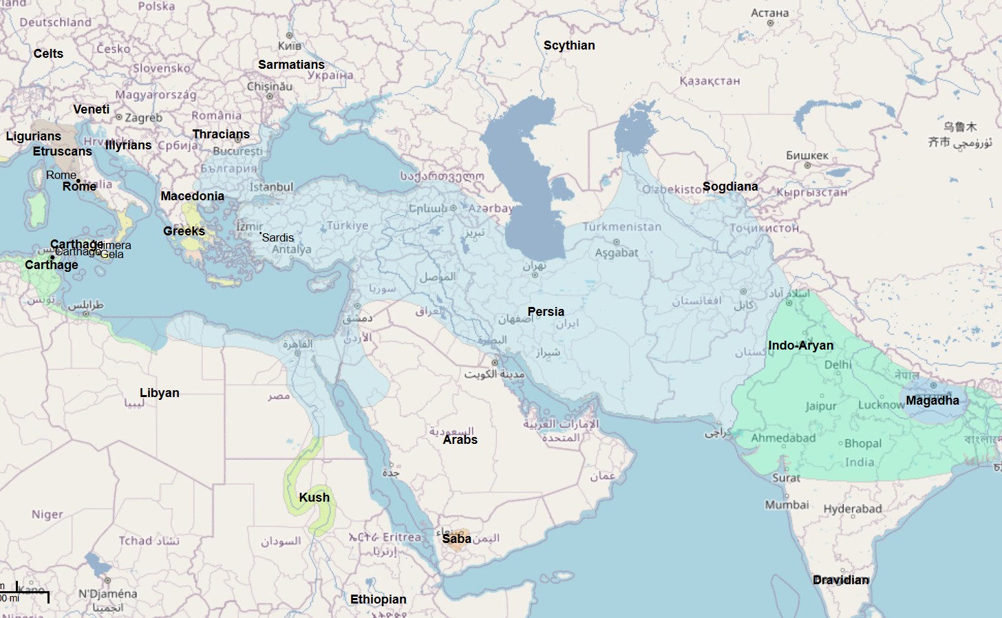 | Ахеменидска империя | 550 пр.н.е. | 330 пр.н.е. | ~220 | 480 пр.н.е. | ~5.5 |