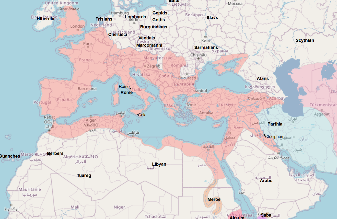 | Римска империя | 27 пр.н.е. | 476 | ~503 | 117 | ~5.0 |